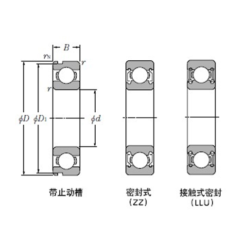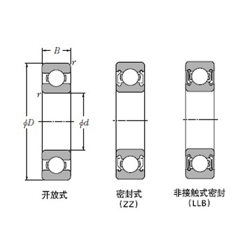 动负荷Cr | 静负荷Cor | 动负荷Cr | 静负荷Cor | 脂润滑 开放式 ZZ LLB |